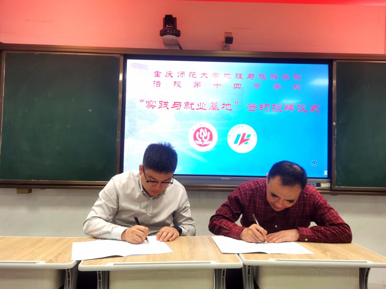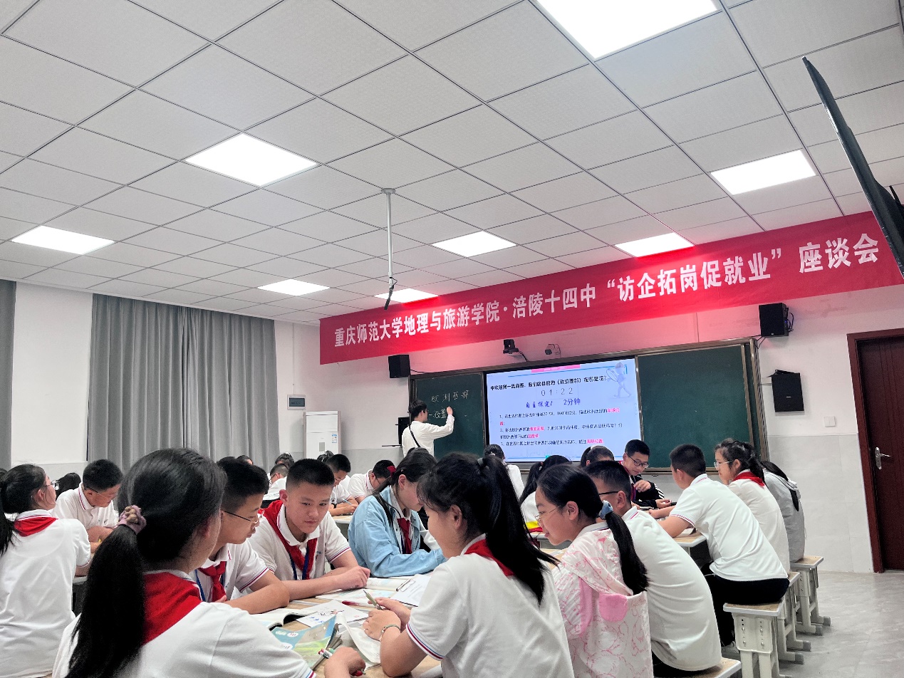 地理科学专业教育实习工作与学生就业的大力支持的感谢,并发出了未来加深学院与涪陵十四中进一步合作交流的诚挚邀请。庞健校长也介绍了涪陵十四中的基本情况与办学理念与成绩,指出中学应与高校教师立足于实际情况进行交流合作。