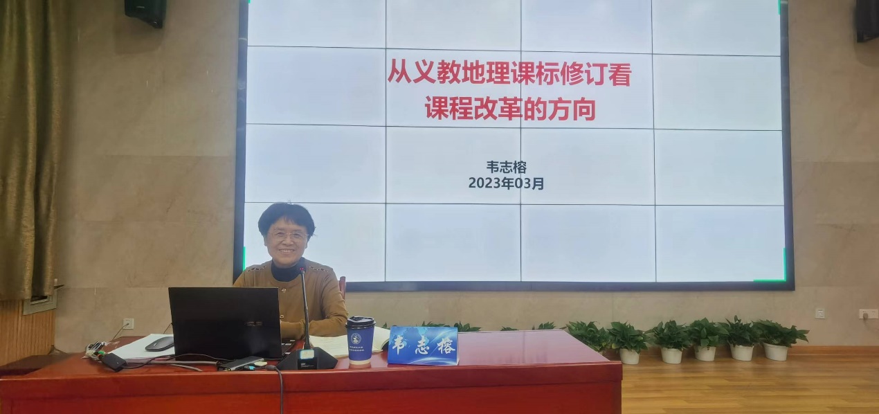 人教社原总编、基础教育地理教学指导委员会主任委员,课标组组长韦志榕作《从义教地理课标修订看课程改革的方向》作主题讲座。韦老师从课标修订思路确定,核心素养与课程目标的确立,课程内容的重组,学业质量的研制、课程实施的细化等方面进行了深度解读。同时用丰富的理论知识和实践经验从坚持育人为主,立足学生发展,以评促教促学等方面引导我们深刻思考挖掘信息,转变观念、深刻领会义教改革的时代要求。