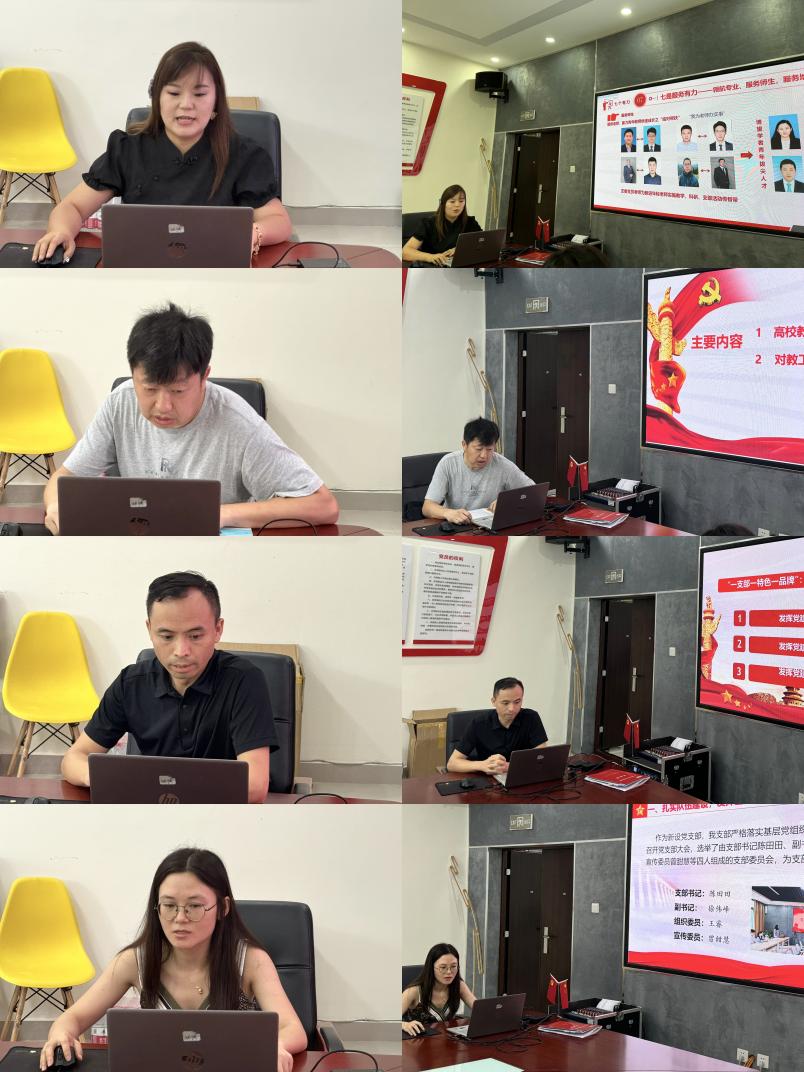 建设凝聚奋进力量做了概述;教工三支部从服务“科学研究”工作、“教学教改”工作和“社会服务”工作三方面讲述了党建与事业融合发展的工作情况,凸显了党建的统领作用。新组建的研究生三支部也对一年以来的党建工作进行了梳理总结,着重在加强思政建设的同时发扬榜样的模范作用,开展党员“政治生日”等活动,引导支部党员奋发进取。