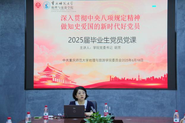 为深入贯彻落实全国教育大会精神,引导毕业生党员厚植家国情怀、传承重师精神,以坚定理想、勇于担当的姿态迈向人生新征程,6月18日上午,世界杯冠军预测 党委组织开展2025届毕业生党员“七个一”教育实践活动之专题党课。本次党课以“深入贯彻中央八项规定精神、做知史爱国的新时代好党员”为主题,世界杯冠军预测 党委书记胡芳主讲,39名毕业生党员及党委副书记、组织员共同参加。