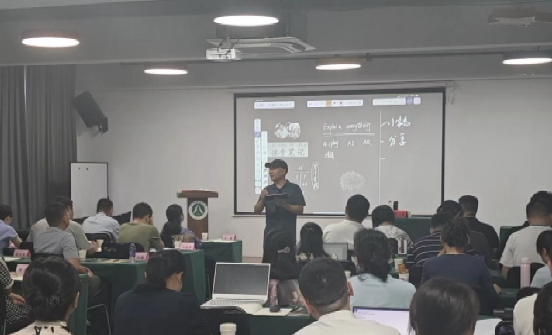 教授、智慧教育研究院副院长黄立新教授为培训班成员带来了《deepseek技术赋能教学实践创新》的专题讲座。黄教授现场演示了“pad+投屏器+Explain Everything教学软件”在实际教学过程中的应用,通过实时互动操作,生动展示了如何借助数字工具实现课堂动态演示、学生即时反馈以及教学资源的灵活调用,让学员们直观感受到技术融合为传统教学带来的创新活力与课堂授课效果。