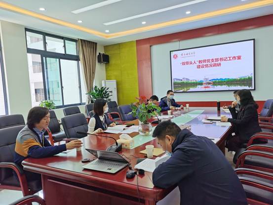 党委组织部王丽萍副部长就“双带头人”教师党支部建设调研工作做简单的背景介绍,然后听取韦杰书记的工作汇报。