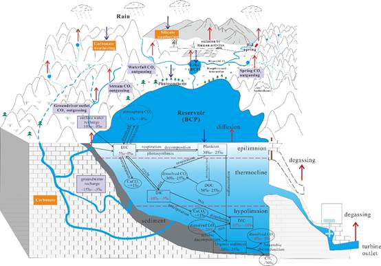 陆地水体碳循环在全球和区域碳收支评估以及实现区域(流域)碳中和目标中扮演了非常重要的角色。内陆水体(湖泊、水库、小溪、河流等)在碳运移、储存和内部转化中起着关键作用。岩溶水库是指分布在岩溶地区或主要接受岩溶水补给的水库,是我国西南地区主要的水库类型。岩溶水库作为一种“碳循环反应器”,来源于流域岩溶作用形成无机碳在其中汇集、滞留、转化、沉积、逸出。然而,目前对于岩溶水库无机碳迁移、转化机制认识还不够,尤其对岩溶地下水补给型水库水-气界面碳排放动态变化和溶解无机碳(DIC)运输、储存和内部转化机制研究还不够深入,从而限制了内陆水体碳汇效应的准确评估。
