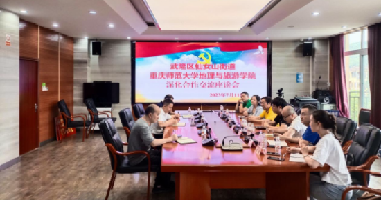 7月10日,项目组来到武隆区仙女山景区树顶漫步自然教育营地、仙女山露营基地考察。成员们在参观与走访的过程中,切身感受到了依托仙女山天然森林、草原环境下露营地的特色活动项目。下午,项目组走入“世界最佳旅游乡村”——荆竹村。在负责人的陪同下,成员们参观归园小镇、寻梦园水果基地,同当地村民畅谈荆竹村的产业发展、旅游发展、乡村发展。并于当晚参与荆竹村“四民四创”主题沙龙活动。11日,项目组同武隆区仙女山街道办事处主任李鹏程、党工委委员解勇、刘继华举行座谈会,会上双方就推动武隆仙女山乡村旅游发展和共建学生实习基地等方面充分交换了意见。