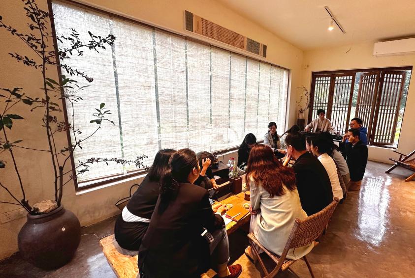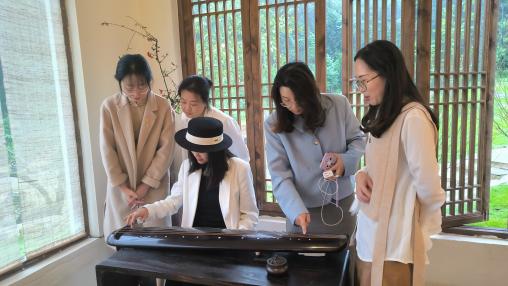 会议首先研讨了航空服务专业建设,老师们在教学科研、人才培养、毕业论文、校企合作等方面对专业的建设与发展提出了积极建议。随后围绕“第二个结合”开展了主题教育活动。谢主任首先介绍了本次主题教育活动的主要内容和重要意义,接下来,茶艺老师以非遗艺术鉴赏为引,通过讲述中国茶文化的渊源,进行了茶艺表演,并传授了品鉴各类茶叶的要义。在茶艺环节,老师们分享了对茶文化在泡茶、待人接物、个人提升等方面的感悟。古琴老师从传统文化四艺之古琴起源、结构、相关典故、儒家思想等多个角度介绍了中国古琴文化相关知识,并为大家演奏了《良宵引》《洞庭秋思》。随后,老师们共同参观了古琴书院,并沉浸式体验了茶艺、古琴、围棋、投壶等活动。