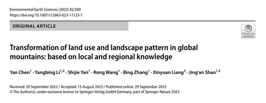 系列相关研究成果以题为《Transformation of land use and landscape pattern in global mountains: based on global knowlegdge》发表在国际核心期刊《Environmental Earth Scinences》。世界杯冠军预测