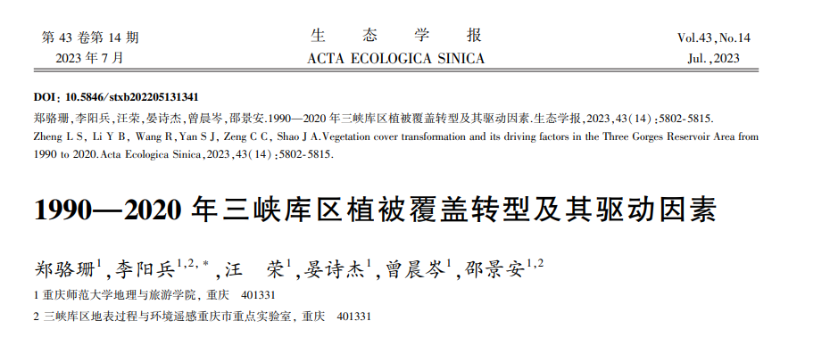 以题为《1990—2020年三峡库区植被覆盖转型及其驱动因素》发表在核心期刊《生态学报》。世界杯冠军预测
