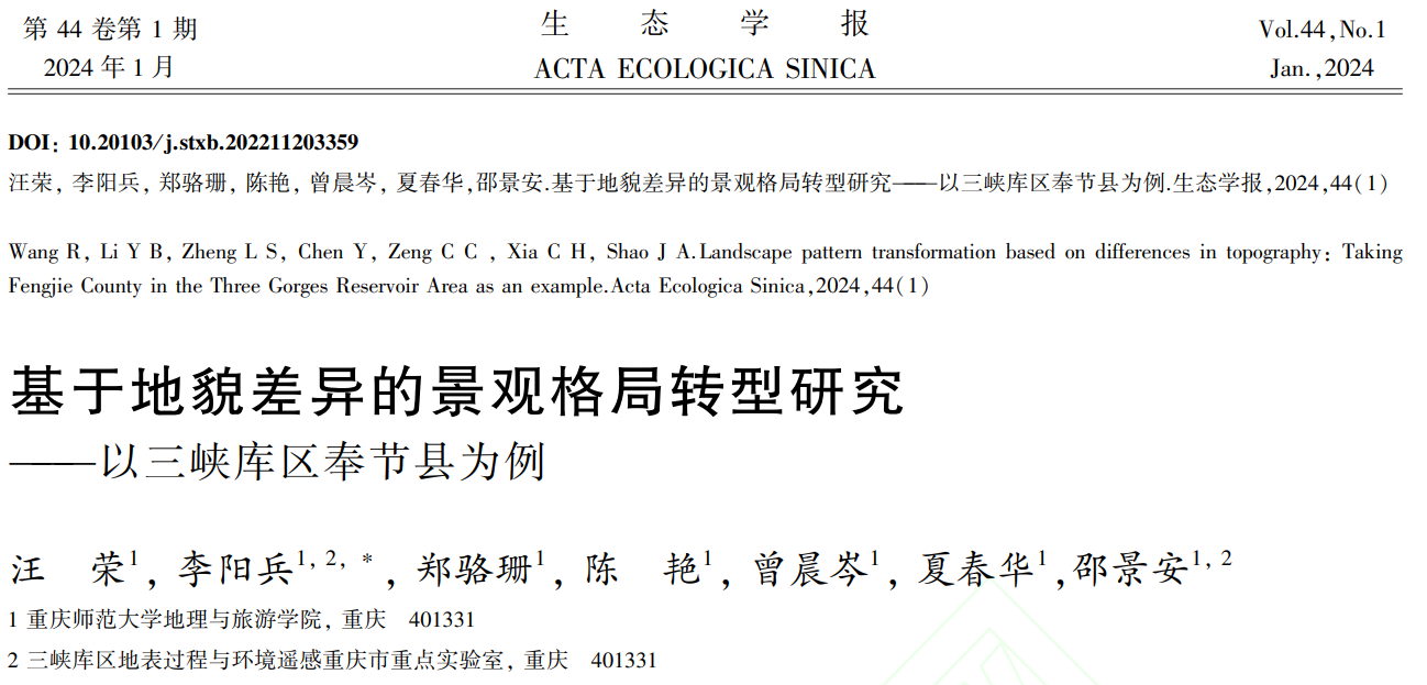 以题为《基于地貌差异的景观格局转型研究——以三峡库区奉节县为例》发表在核心期刊《生态学报》。世界杯冠军预测