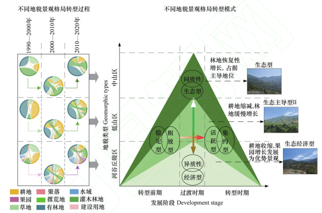 图3.基于地貌差异的景观格局转型过程及其模式