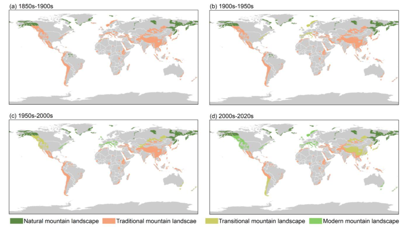 图1.全球山地景观格局演变的时空分布