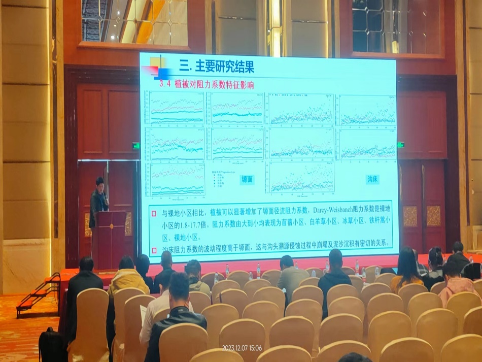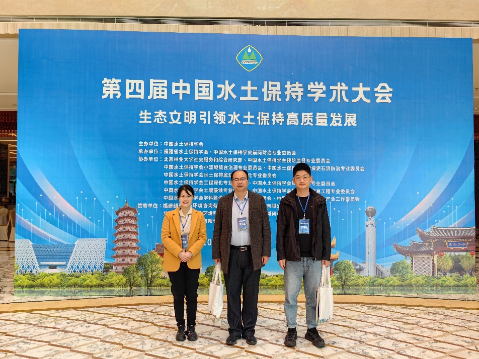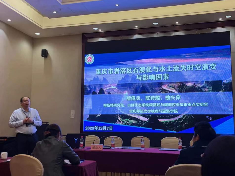 蒲俊兵研究员、甘凤玲副教授,娄义宝讲师等一行人参加了本次学术大会。蒲俊兵研究员主持了“石漠化防治分会场—新时代石漠 化防治新技术新业态”并作了题为“重庆市岩溶区石漠化与水土流失时空演变与影响因素”的报告;甘凤玲副教授也在此分会场做了题为“喀斯特槽谷区不同岩层倾向对水土流/漏失的影响”;娄义宝讲师在“土壤侵蚀分会场—土壤侵蚀环境与效应”作了题为“黄土塬区典型草被对沟头溯源侵蚀过程影响机制模拟研究”的报告。