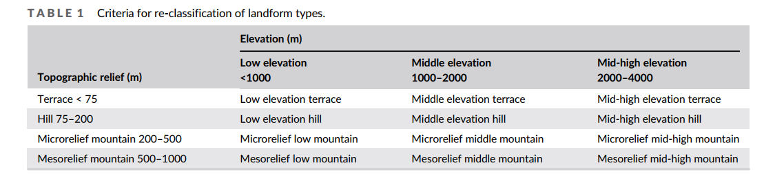 图2 地貌类型划分标准
