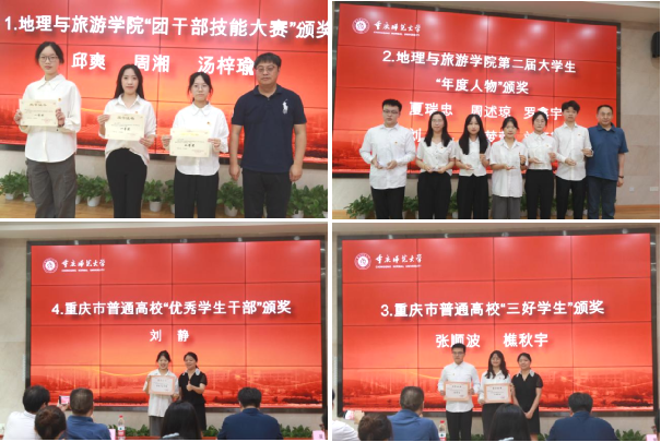随后,张院长、曹院长、胡书记分别为“团干部技能大赛”“世界杯冠军预测 第二届大学生年度人物”“重庆市普通高校三好学生”“重庆市普通高校优秀学生干部”的获奖同学颁奖。苑兆瑞同学作为学生代表发言,她分享了自己在活动月的心得体会,鼓励大家珍惜时光、奋勇向前。