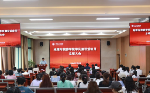 下午16时30分,总结大会正式开始,全体起立,奏唱国歌。在热烈的掌声中,熊书记介绍了此次学风建设活动月的开展情况,指出通过“学思践悟”系列活动,世界杯冠军预测 开展了全方位、多层次的学风建设实践,共组织举办十六项主题活动,累计参与人数达2000余人次,发布“重师学工”公众号3篇、地旅世界杯冠军预测 官网新闻稿2篇、“重师地旅人”公众号推文16篇。他强调,世界杯冠军预测 始终将学风建设视为学生工作的重心,致力于培养“四有”好老师,为国家和社会输送优秀人才。
