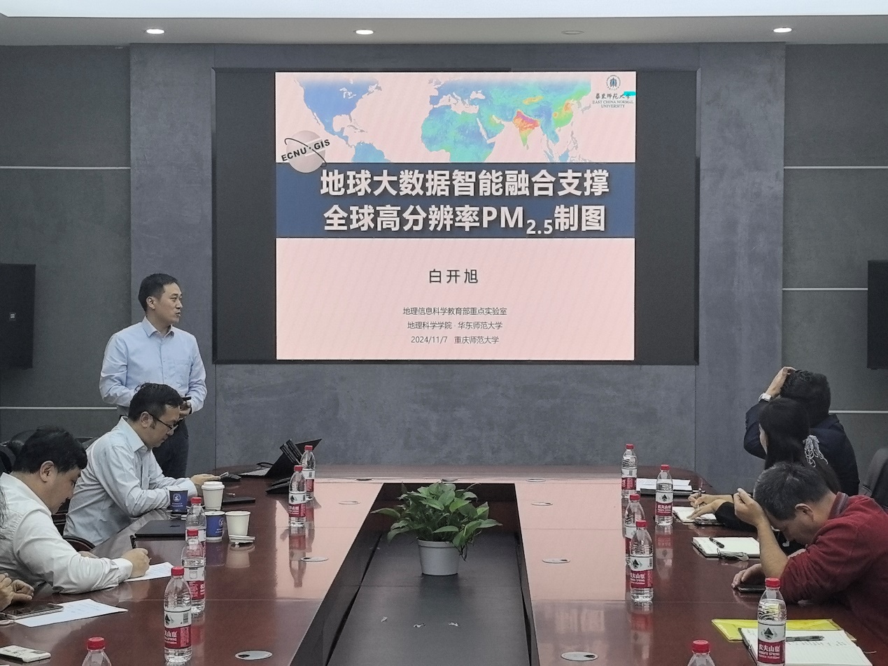 讲座中,白开旭教授介绍全球长时序(2000—2023)时空无缝逐日1公里分辨率AOD与PM2.5浓度栅格数据产品。具体内容包括:全球高分辨率 AOD 缺失重建,全球PM2.5反演场景感知深度网络,全球PM2.5人口暴露风险时空格局。讲座内容引发了参会师生的广泛思考与讨论,进一步认识到高质量PM2.5浓度数据是支撑 PM2.5健康风险和环境效应研究的重要基础。