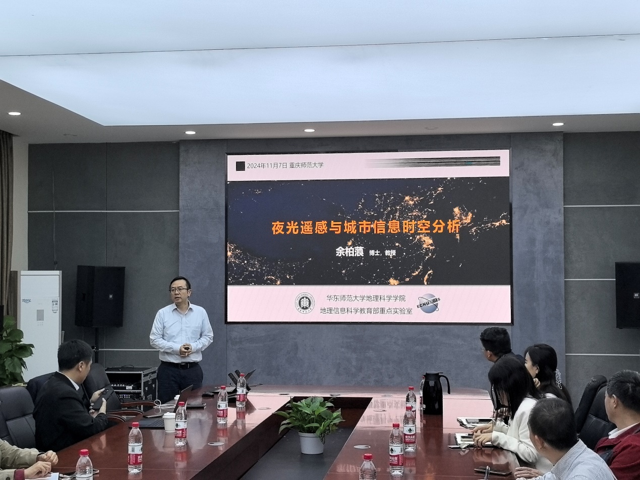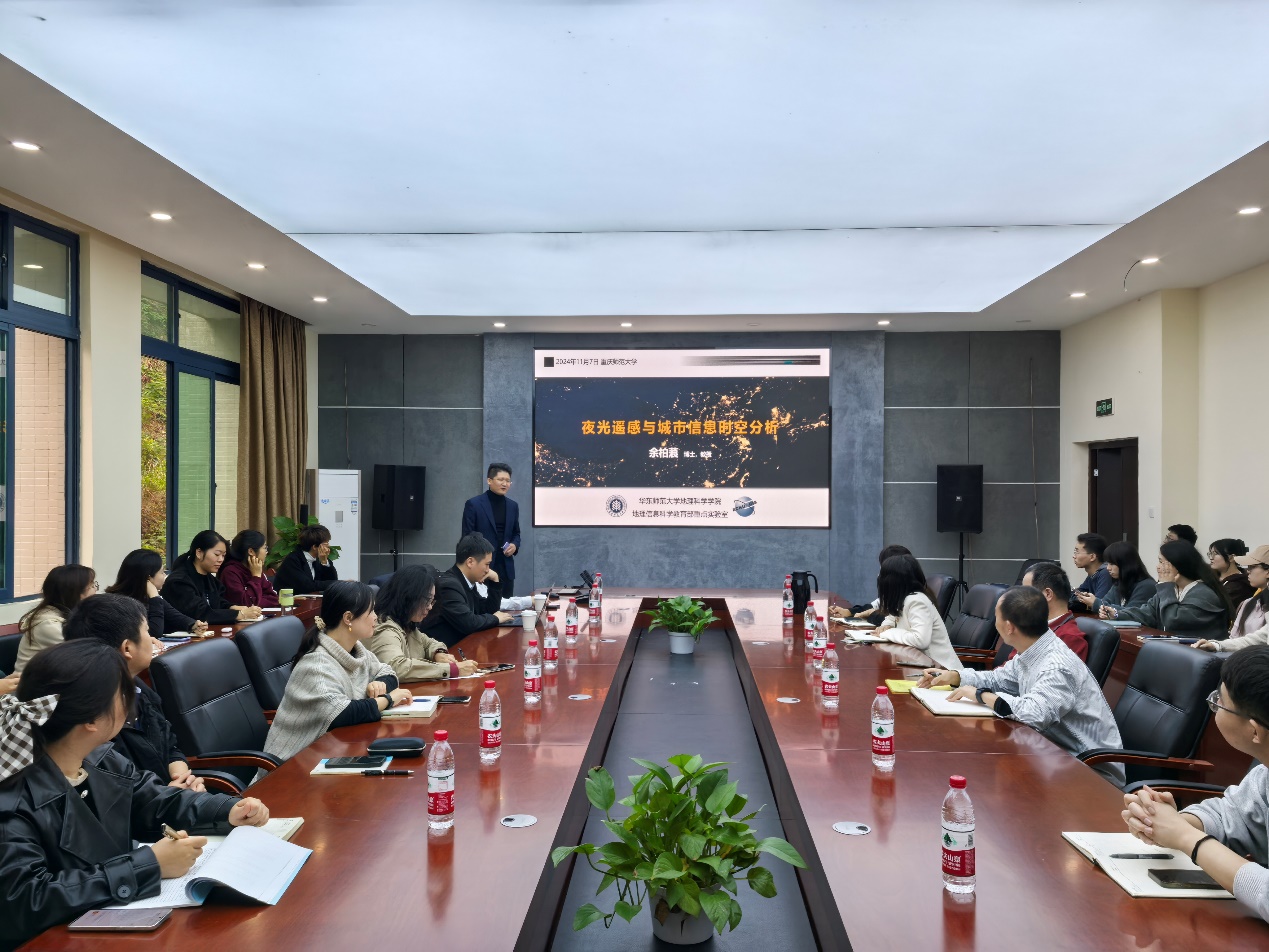 讲座中,余柏蒗教授介绍了夜光遥感数据应用于城市信息时空分析的进展。具体内容包括:时空伪恒定不变理论——突破跨传感器校正新技术,多模态信息融合的“夜光-城市要素”感知,城市空间结构与关联识别测度方法。讲座内容引发了参会师生的广泛思考与讨论,从新的视角来认识夜间灯光遥感数据在城市建成区提取、城市内部结构及城市群分析、社会经济指标估算等方面的应用。参与同学向余柏蒗教授虚心请教,余柏蒗教授积极地给予解答。