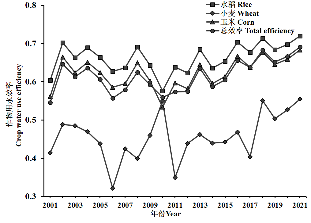 (图2 2001—2021年四川盆地作物用水效率年际变化)