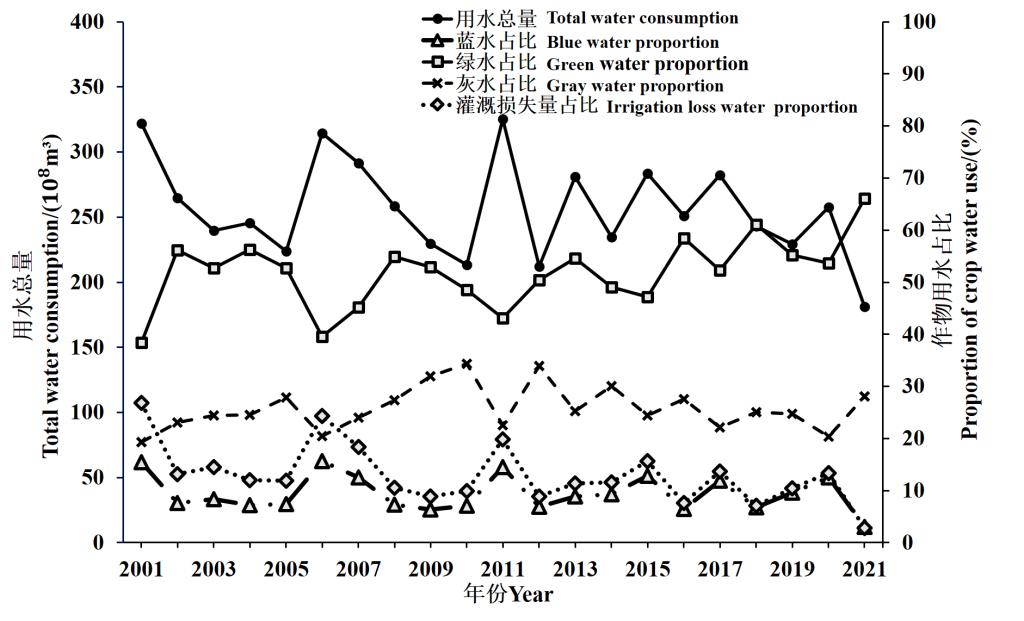 (图1 2001—2021年四川盆地作物用水年际变化)