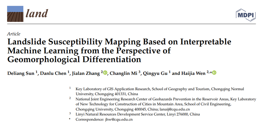 孙德亮教师的带领下,2020级地理信息科学本科生陈丹璐发表了系列关于滑坡易发性评价的学术论文,其中SCI期刊论文一篇(Land),中文核心期刊论文两篇(《地质力学学报》和《北京师范大学学报》)。
