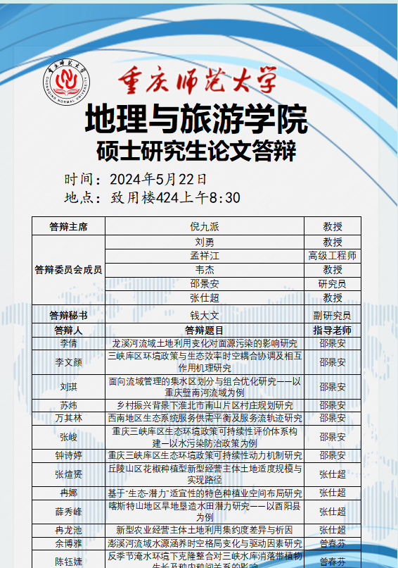 三峡库区地表过程与生态修复重点实验室