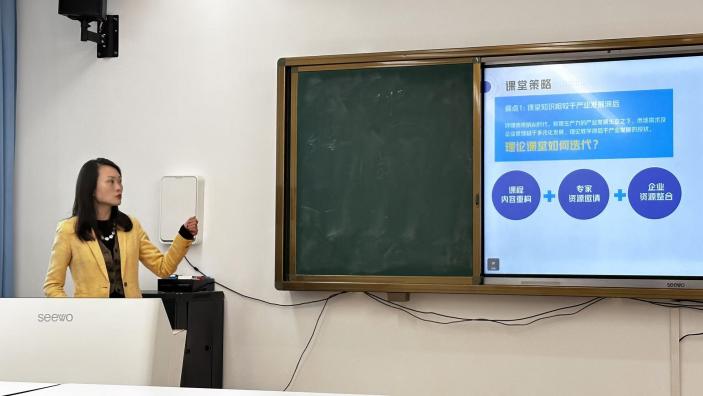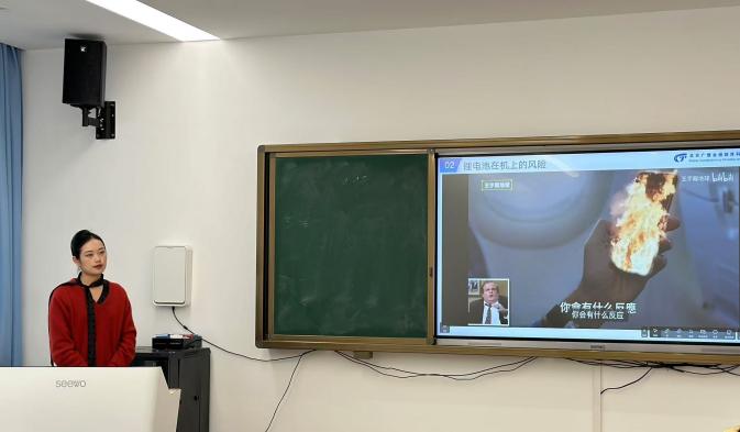 紧接着,示范课程展示环节成为本次活动的亮点。王樱洁老师为大家带来了《人力资源管理》示范课教学。王老师通过新颖的教学框架、高互动性的教学设计和丰富的教学资源扩展,对该课程进行了积极的改革创新。她巧妙地将理论知识与产业资源相结合,采用以学生为中心的研讨式教学、真实情景模拟的实践互动以及思政教育的融合,为该门课程注入了新的活力,赢得了现场老师们的一致好评。企方的江湄汀老师也为大家带来了《民航客舱安全管理》示范课。江老师以机上锂电池的运输规则为切入点,通过理论讲授、案例分享及视频展示等方式,生动形象地讲解了锂电池的分类和识别、机上托运规则及重要的安全守则。江老师的示范课不仅内容丰富,形式富有趣味性,更具有很好的现实应用意义,让在场的老师们受益匪浅。