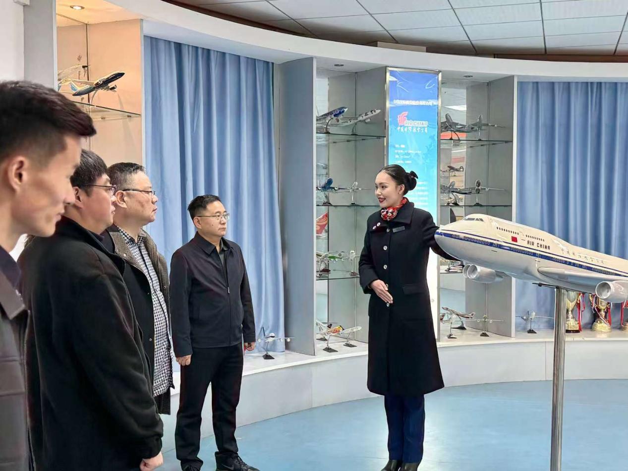 随后,邵文涛校长一行在张云耀副院长的陪同下,实地参观了航空服务与礼仪实训中心,由航服专业学生,结合实训中心的建设历程、专业特色与教学成果,进行条理清晰、重点突出的讲解。