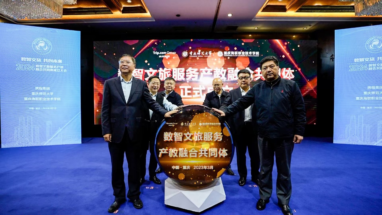 牵头成立数智文旅服务产教融合共同体在重庆宣布成立,来自全国各地参与共同体建设的院校、行业协会及合作企业等202家单位代表参加成立大会。