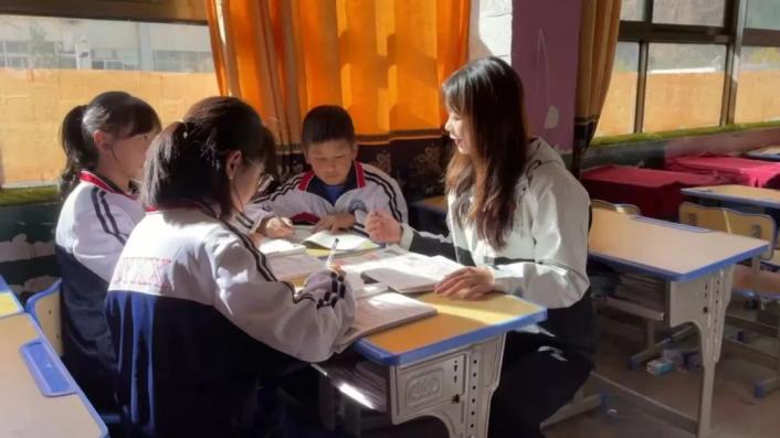 在一个月的疫情防控工作后,终于迎来了察雅县中学开学的日子。哪怕做好了充足的心理准备,但是当被得知需要暂代九年级化学科目的教学时,作为文科生的徐静还是有些焦虑。“九年级是毕业年级,马上就要面临中考,对他们来说化学又是一门全新的学科,我该如何上好这门课呢?”于是在上课前,徐静不断地查资料、写教案、做试讲,哪怕这样,她的心中依旧十分的忐忑。但好在第一次的化学课堂非常的成功,学生们很喜欢这个在课堂上总是冲他们微笑的小徐老师。而这个新来的支教老师不仅带领着他们走进了奇妙的化学世界,更是在课后关心着他们每个人的学习和生活。“党和国家出台了这么好的政策让大家免费读书,大家一定不要辜负党和国家的期望,一定要走出去,学有所成后再回报家乡!”这是徐静最常对学生说的话。走出大山,是为了能够更好地回到大山。她希望用这一年不长的时间,在孩子们心中播种下“听党话、感党恩、跟党走”的思想火种,让他们努力成为堪当民族复兴重任的时代新人!