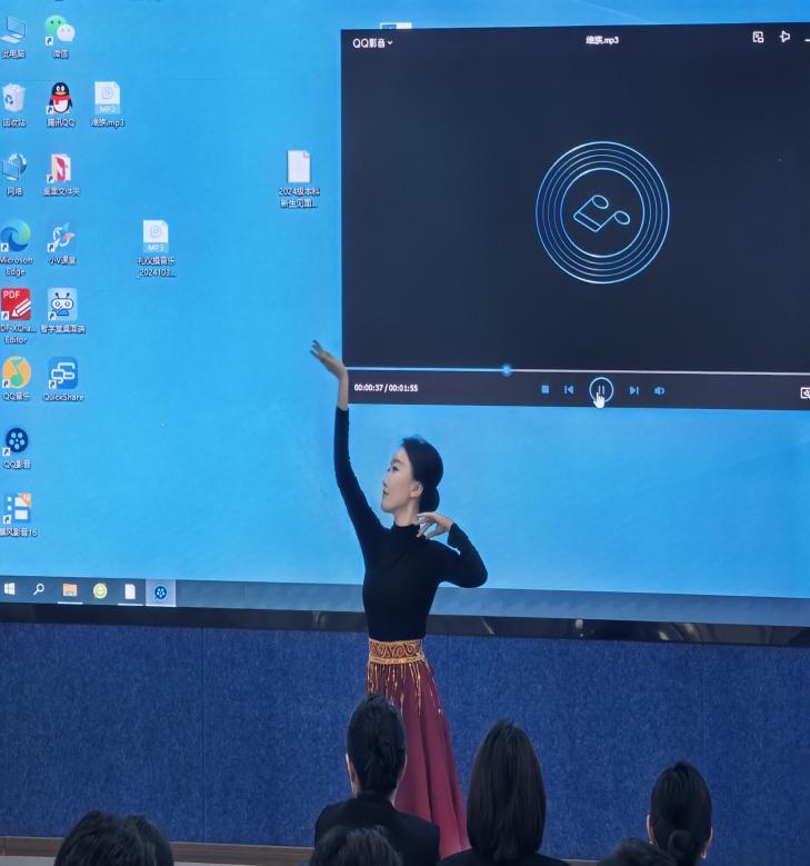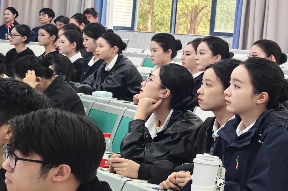 接近本次课程尾声,23级的礼仪助教们及24级同学们站上讲台,为同学们带来精心准备的节目,展现航服学子的风采,使整个课堂充满活跃的氛围。