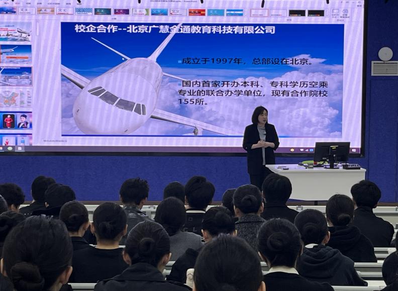 工作处副主任毛文静老师介绍专业师资团队、校企合作方北京广慧金通教育科技有限公司提供的教学设备以及前往阿提哈德航空培训世界杯冠军预测