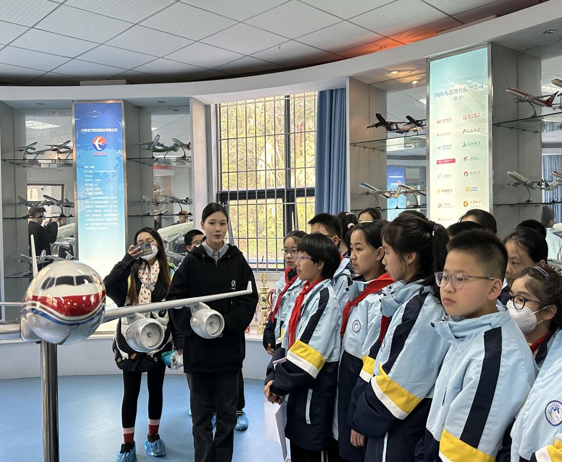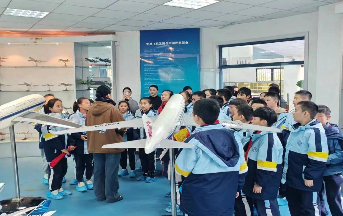 附属小学2018级的小朋友们讲解了航空服务与礼仪实训中心最具特色的航模展厅,里面整齐排列着体现世界民航发展和中国民航发展的185架仿真飞机模型,在空乘专业同学详细的讲解下,附小的小朋友们对国内外航空公司的飞机模型有了一定了解和认识。