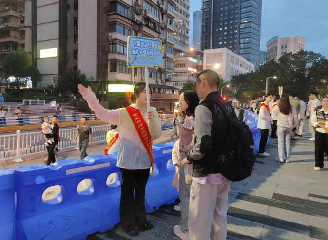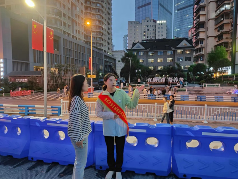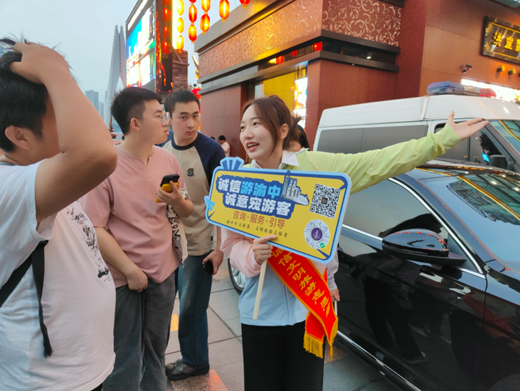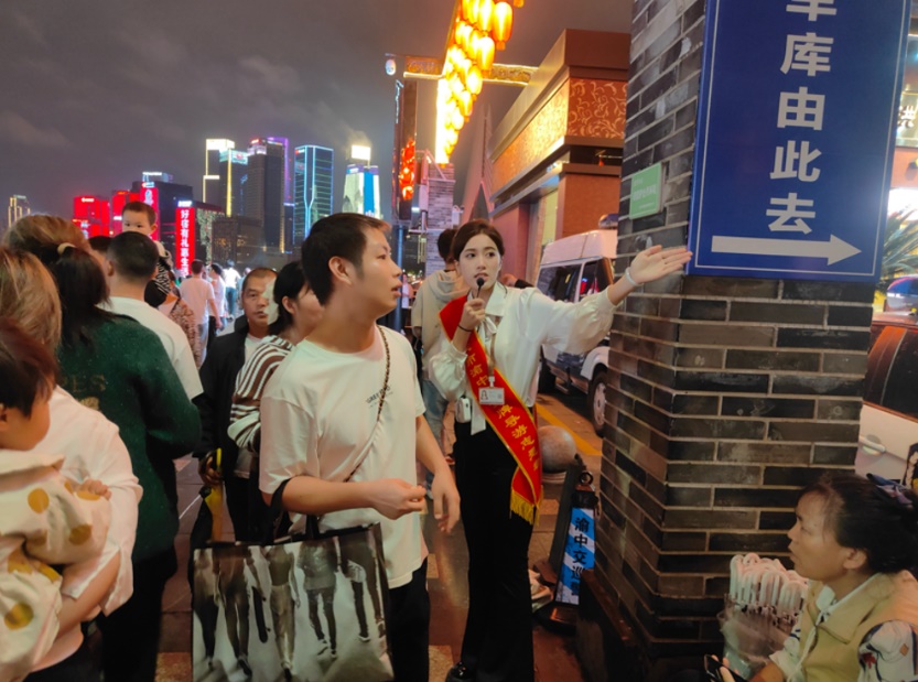 文明旅游志愿者们以定点岗与流动岗相结合的方式开展服务,“双岗结合”,扎实细致周到地执行工作任务,全方位为游客服务,有效宣传渝中文明旅游,根据客流量协调疏导,及时应对现场突发情况。从下午六点到晚十点,志愿者们用敬业、耐心的实际行动向社会传递文明新风,为游客安全出行、文明旅游营造了良好氛围,从而达到促进旅游业发展的目的。同时,志愿者的辛勤工作展现了重师地旅学子吃苦耐劳、团结协作的优良精神风貌。