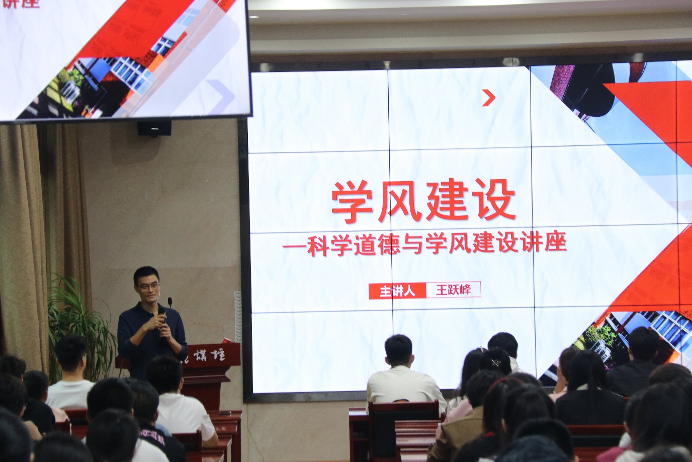 首先,王跃峰副教授指出科学道德,是学术研究的灵魂所在。他要求我们秉持诚实守信的原则,尊重他人的研究成果,杜绝抄袭、剽窃等不端行为。每一个数据、每一次实验、每一篇论文,都应是我们智慧与汗水的结晶,而非虚假与欺骗的产物。同时强调学术诚信与学术规范对学生成长成才的重要性,指出学术不端行为的根本原因是追求名利和个人品德的缺失,呼吁学生们要坚守学术道德底线,共同维护风清气正的学术环境.