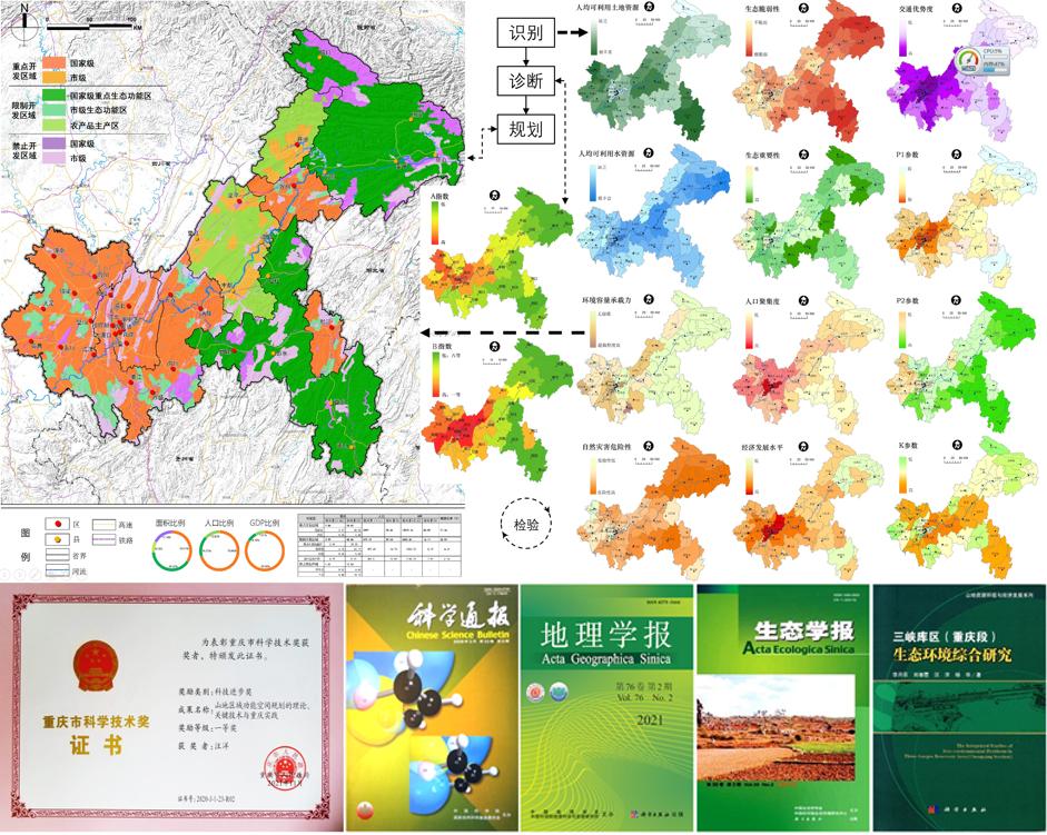 紧密服务国家“生态文明”和“主体功能区”战略,围绕山地条件下科学合理识别、优化和布局各类地域功能空间的科学问题,汪洋研究团队10余年持续攻关,形成系列研究成果。1)初步构建了山地主体功能区的识别与规划理论。建构了山地人居环境信息图谱理论、山地功能空间格局的适宜性调谐理论,实现了山地功能空间的定量测度和识别,山地功能空间发生规律剖析及空间格局优化模式建构。2)研发了一套山地功能区的计量化识别关键技术。建设了多要素、多尺度、多类型的重庆市国土空间时空大数据库和模型库与一套山地功能区数字化、定量化、模型化表征关键技术。3)厘定了重庆市主体功能区布局的技术性方案。开展重庆市主体功能空间、生态空间、城镇空间、人口发展空间等关键功能空间的系列锚定与规划实践工作,区划布局方案沿用至今。研究成果在Chinese Science Bulletin、地理学报、城市规划等期刊发表论文30余篇;获得重庆市科技进步一等奖1项、教育部科技进步一等奖1项、重庆市科技进步奖二等奖3项理论和实践成果成功应用于60余项市、县、镇功能空间规划,被市政府及相关部门采纳应用5次,被时任重庆市各级领导批示4次